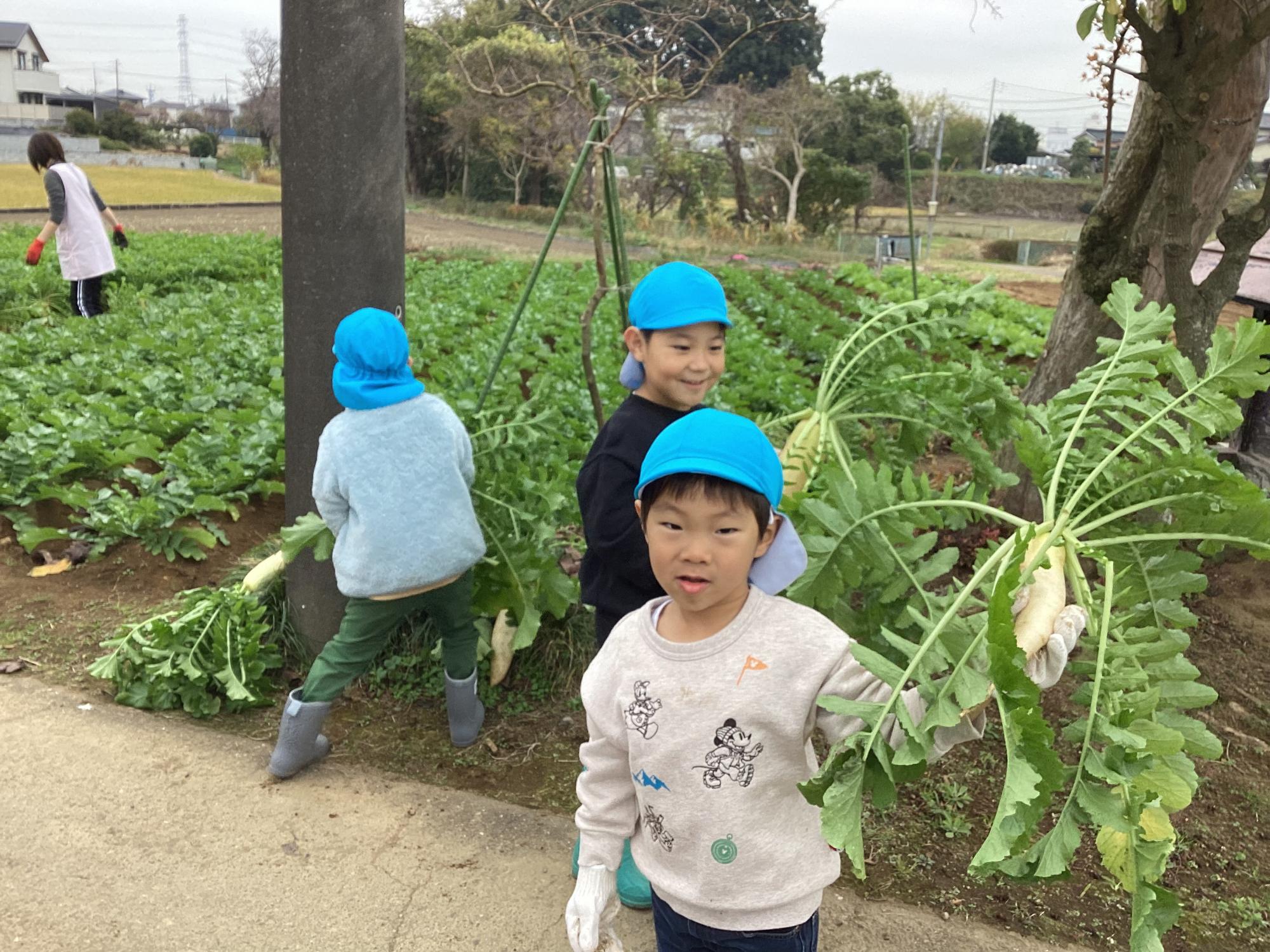 令和7年11月13日に大根と柿の収穫体験を行いました(公立保育所)