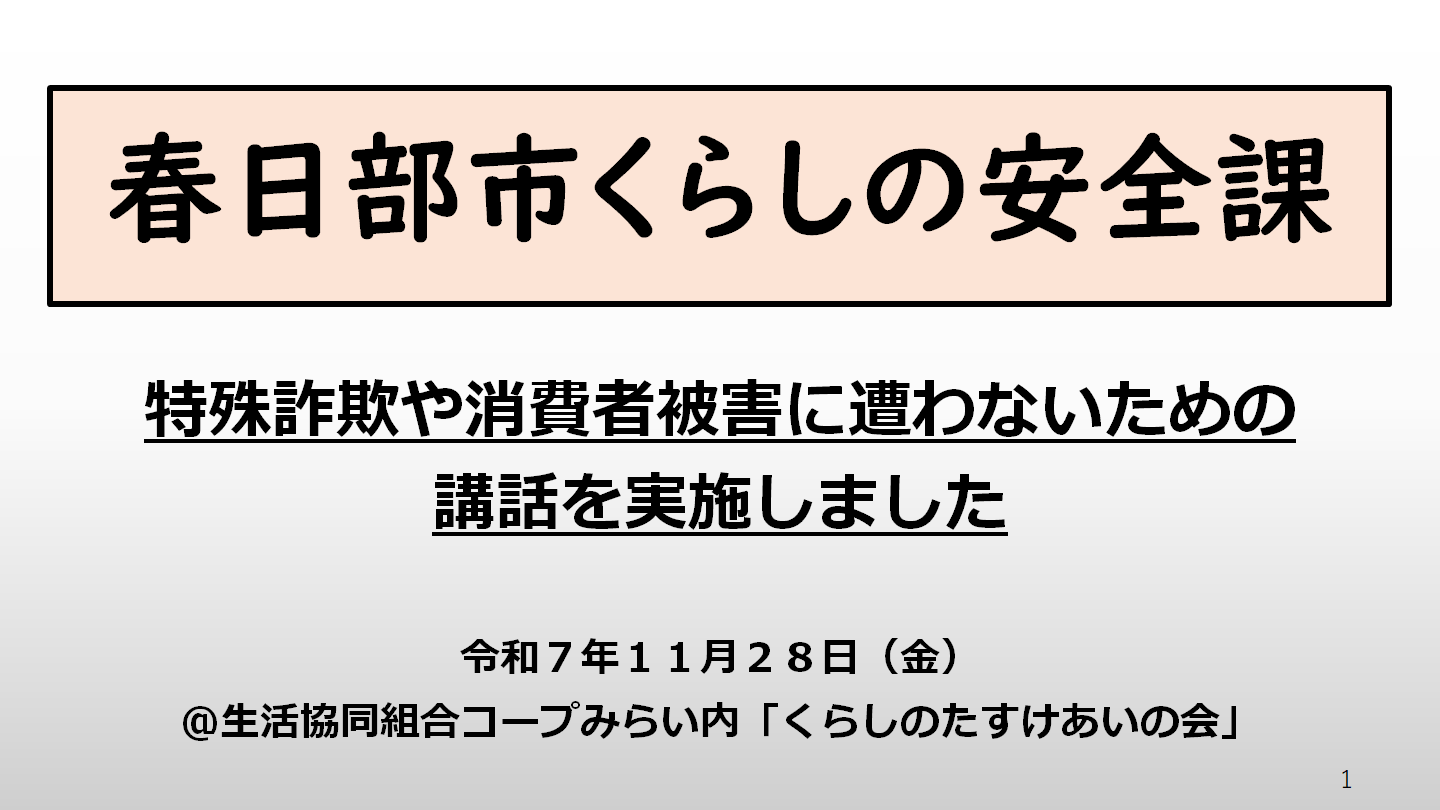 豊春ささえあいミーティングにおいて消費者トラブルに関する講話を実施しました