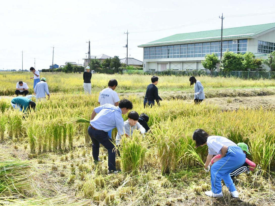 9月22日 目の前の田んぼが学びの場に。中学生が稲刈り体験